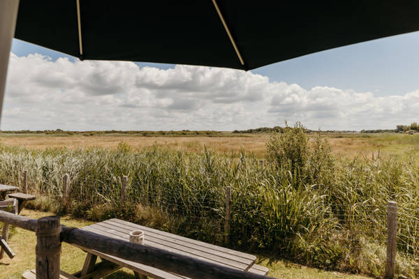Het Reddingshuisje heeft een veranda met een gezellige picknickbank en een lekkere buitenplek om ultiem te genieten van het buitenleven.